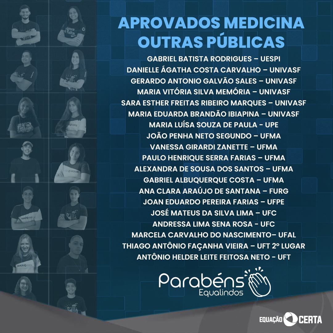 Desde a idealização do Colégio Equação Certa, lutamos por um único ideal: TRANSFORMAR FUTUROS POR MEIO DA EDUCAÇÃO. Hoje, temos a certeza de que estamos no caminho certo! Estamos convictos de que elaboramos, deciframos e calculamos a Equação Certa da aprovação. Mais uma vez, fizemos história. frente! Todos vocês estão fazendo história e estamos cientes do tamanho da nossa colaboração nessa conquista tão expressiva 🎊🎉